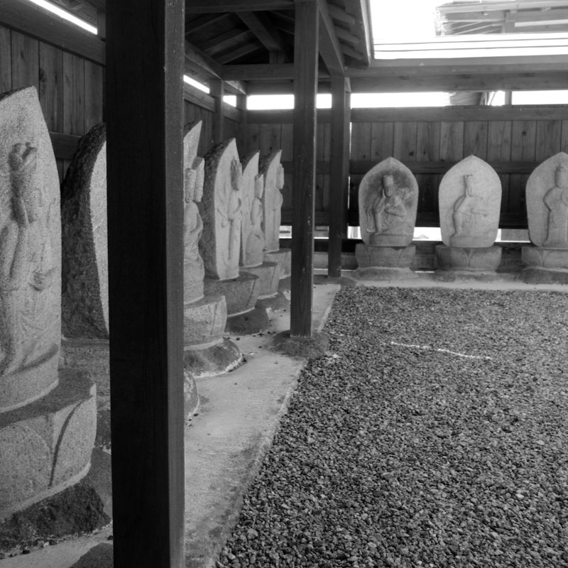 本堂の裏の片隅、小さな四辺の回廊の中に西国三十三所の石仏が整然と並んでいた。