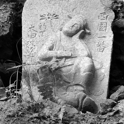 源左エ門の名を刻んだ観世音が、四阿近くの洞に納めてあった。蓮や衣に朱の彩色が施してあったらしい。流れる筆は西国三十三番、谷汲山の詠歌のよう...
